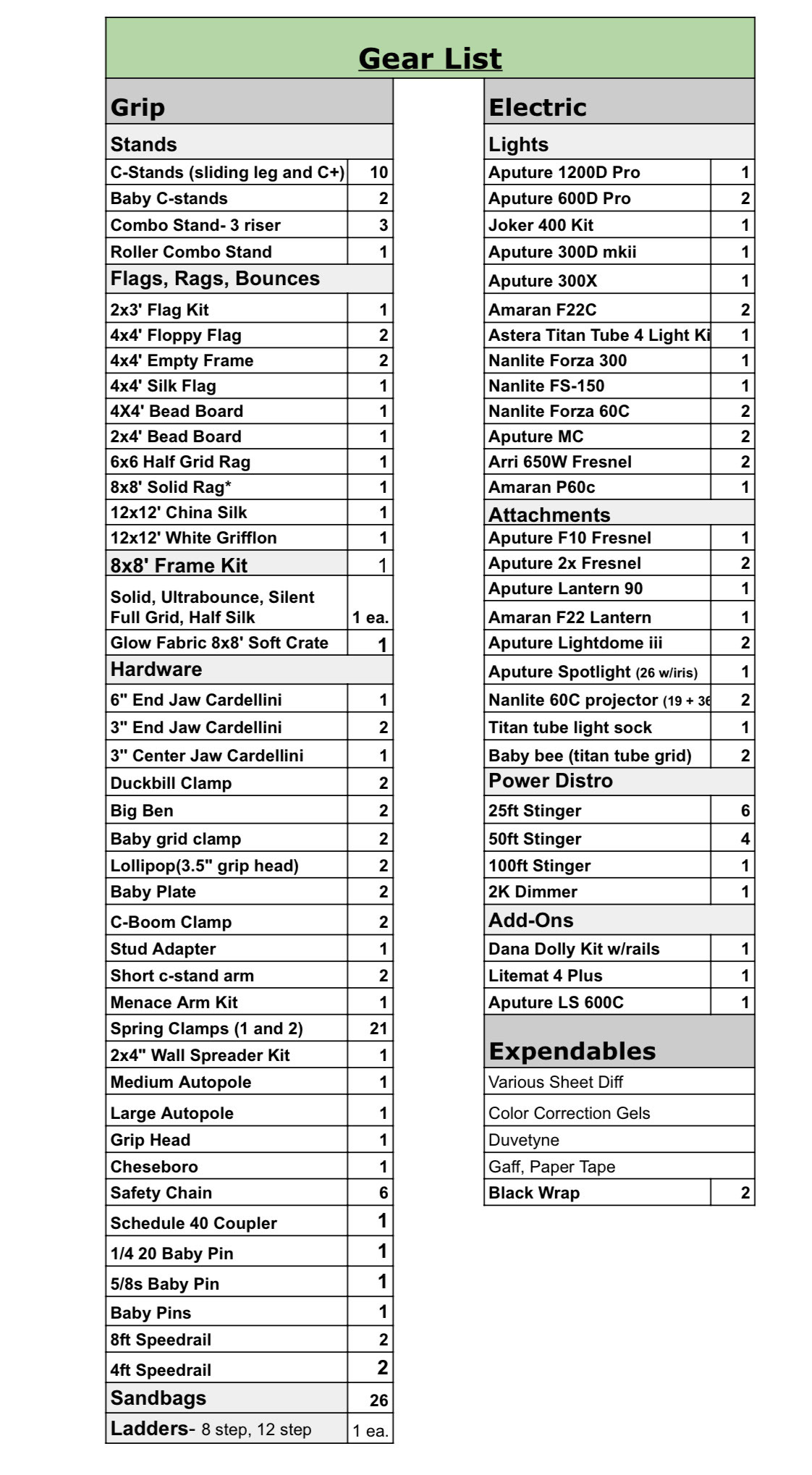 All items listed are available to rent (use the icon below to email for a quote)
